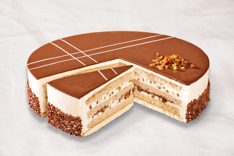 Jetzt wird’s edel: Kandierte Walnüsse und mit Ahornsirup verfeinerte Sahne machen diese Torte zum Highlight in Ihrer Vitrine! Beides finden Sie zwischen saftigen Rührteigböden, dazu noch eine Schicht aus Kakaocreme und ganz oben bedeckt mit Schokoladencreme. Die Randgarnierung besteht aus zart-schmelzenden Milchschokoladen-Rondies. Can-a-da zu nein sagen?